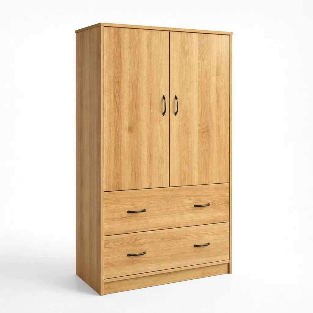 Armoire en panneau de particules chêne avec 2 portes et 2 tiroirs