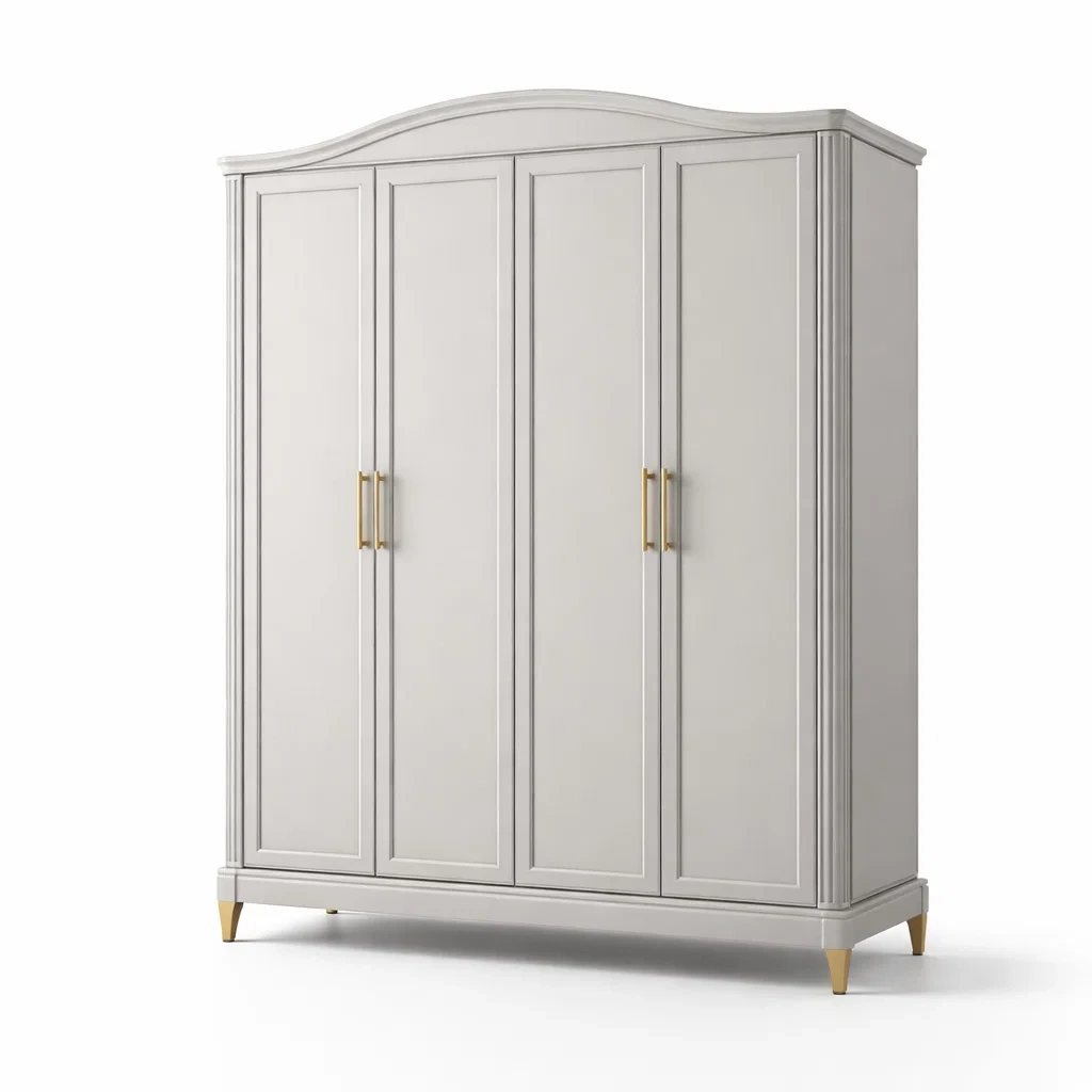 Armoire en bois avec quatre portes blanc et doré