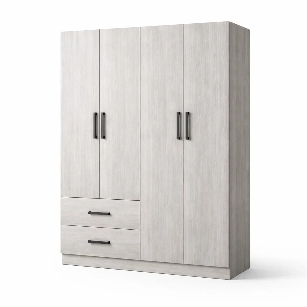 Armoire 4 portes 2 tiroirs en bois composite blanc 200 x 150 x 60 cm