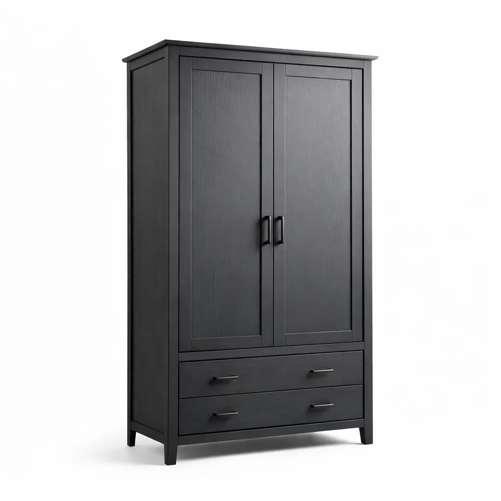 Armoire en bois noir avec 2 portes et 2 tiroirs