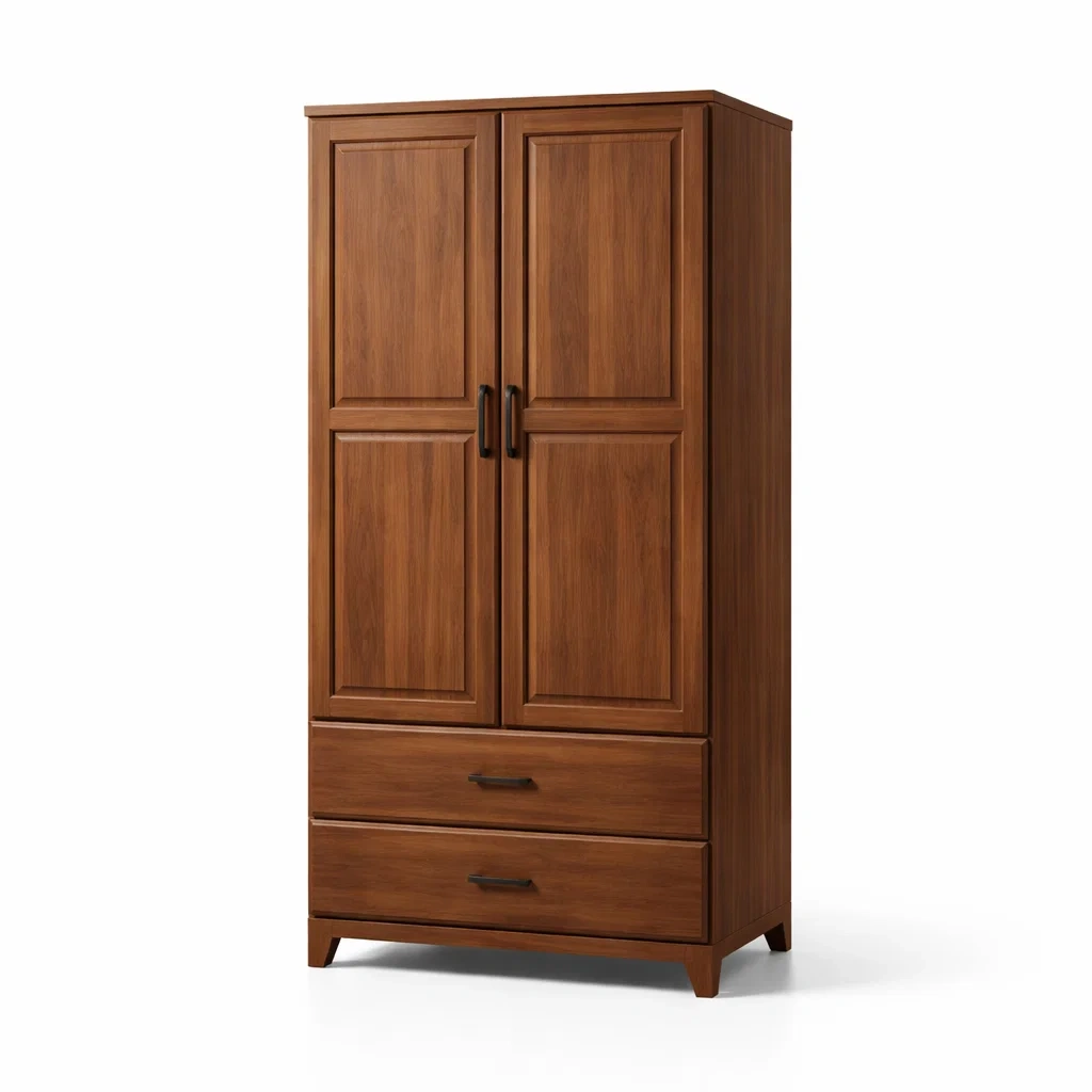 Armoire en bois marron avec 3 portes et 2 tiroirs
