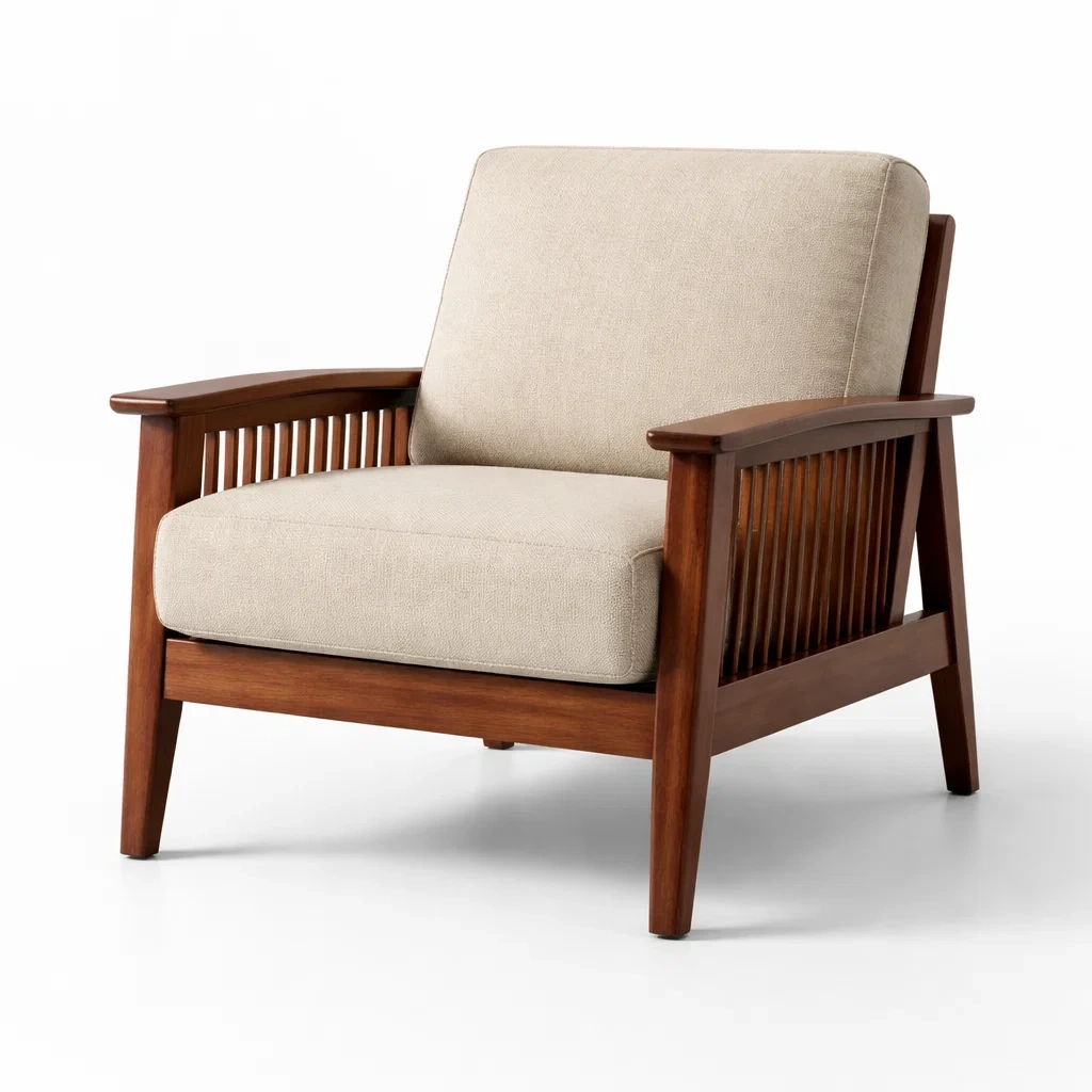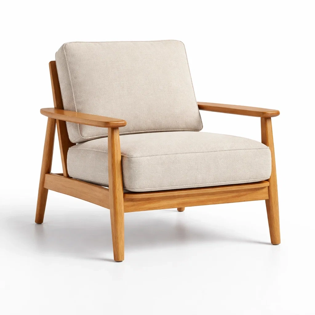 Fauteuil en bois avec coussins en polyester beige