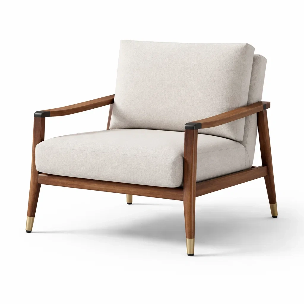 Fauteuil en bois de noyer avec revêtement en polyester crème