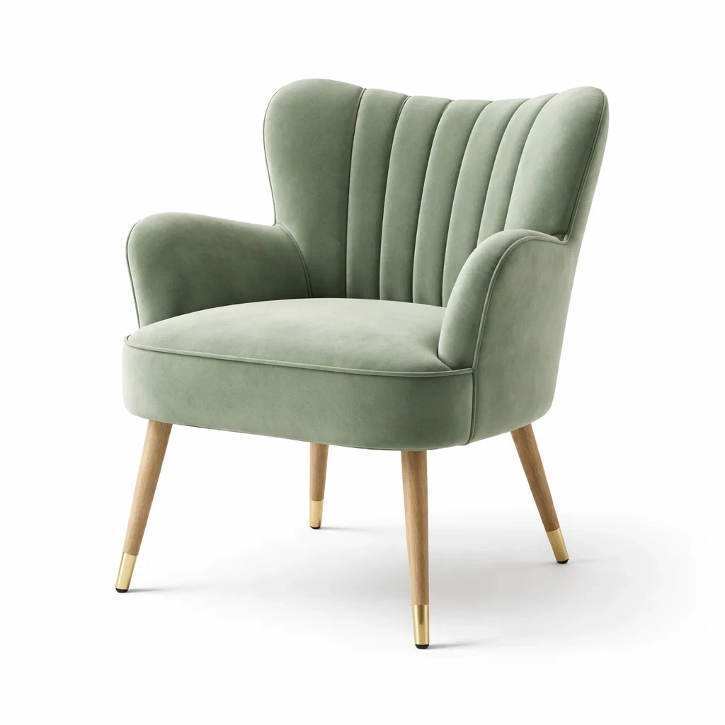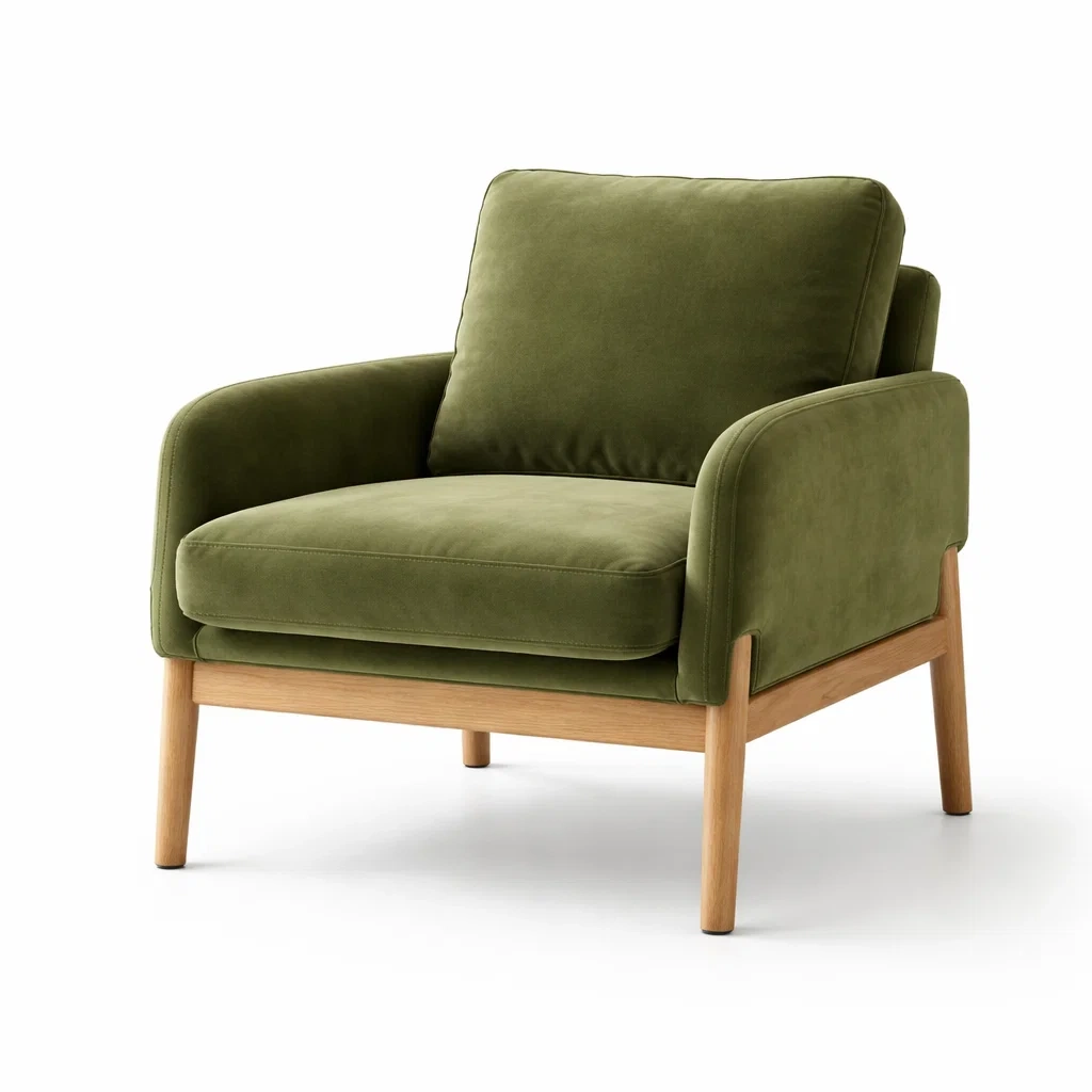 Fauteuil en velours vert avec pieds en bois