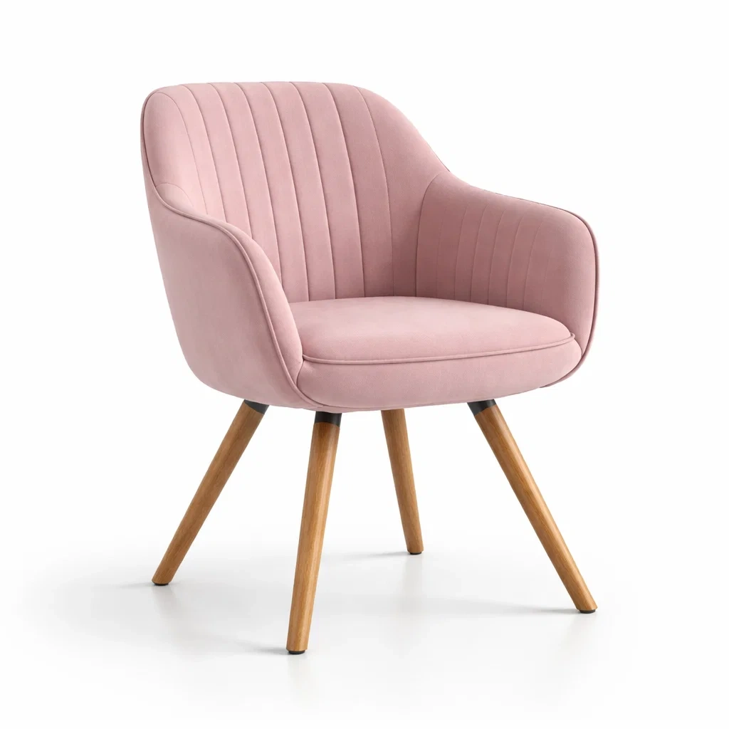 Fauteuil en velours rose avec pieds en bois de hêtre