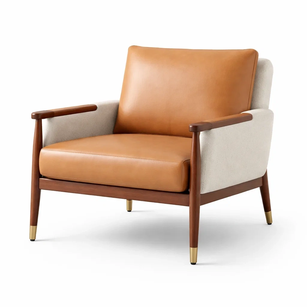 Fauteuil en cuir et tissu avec structure en bois massif
