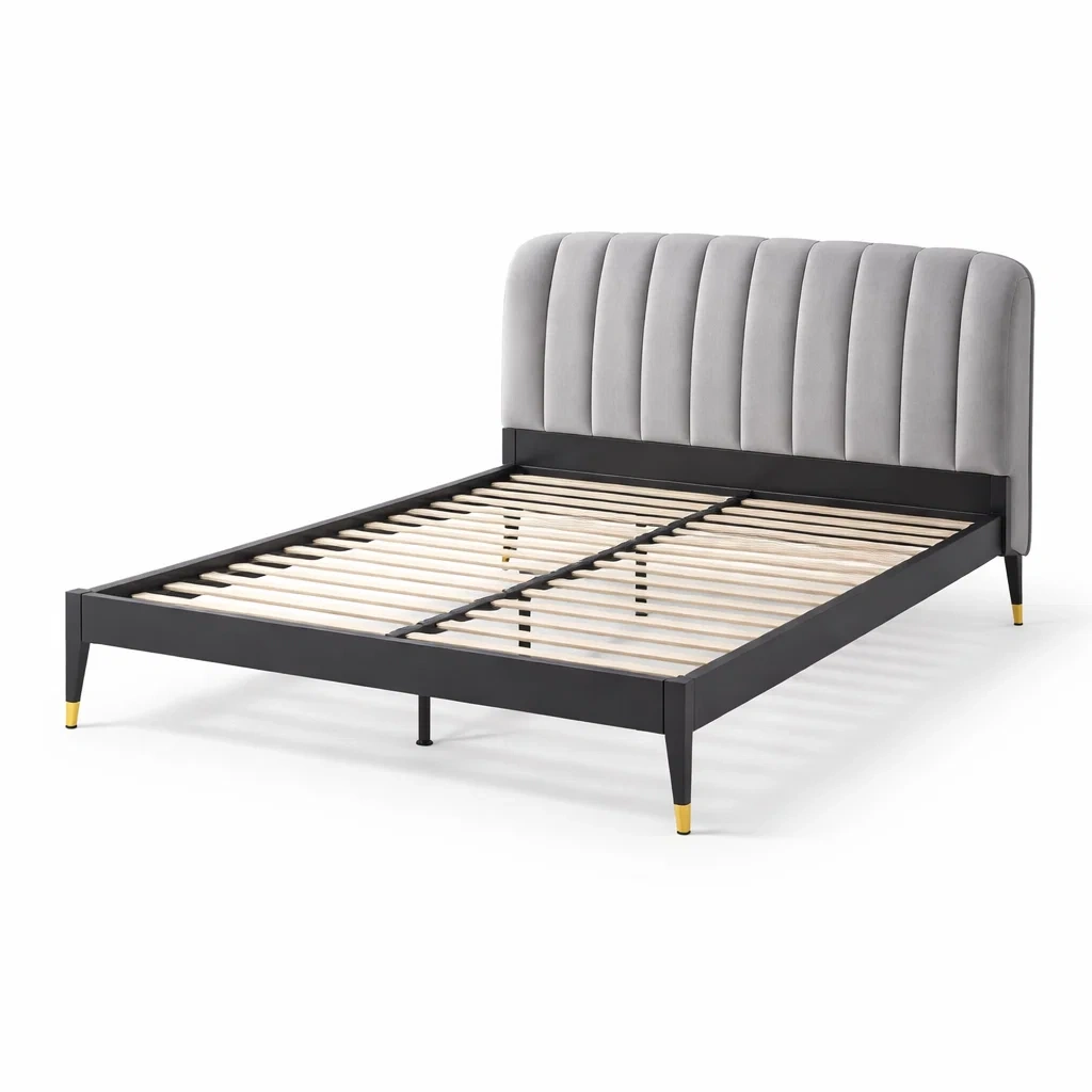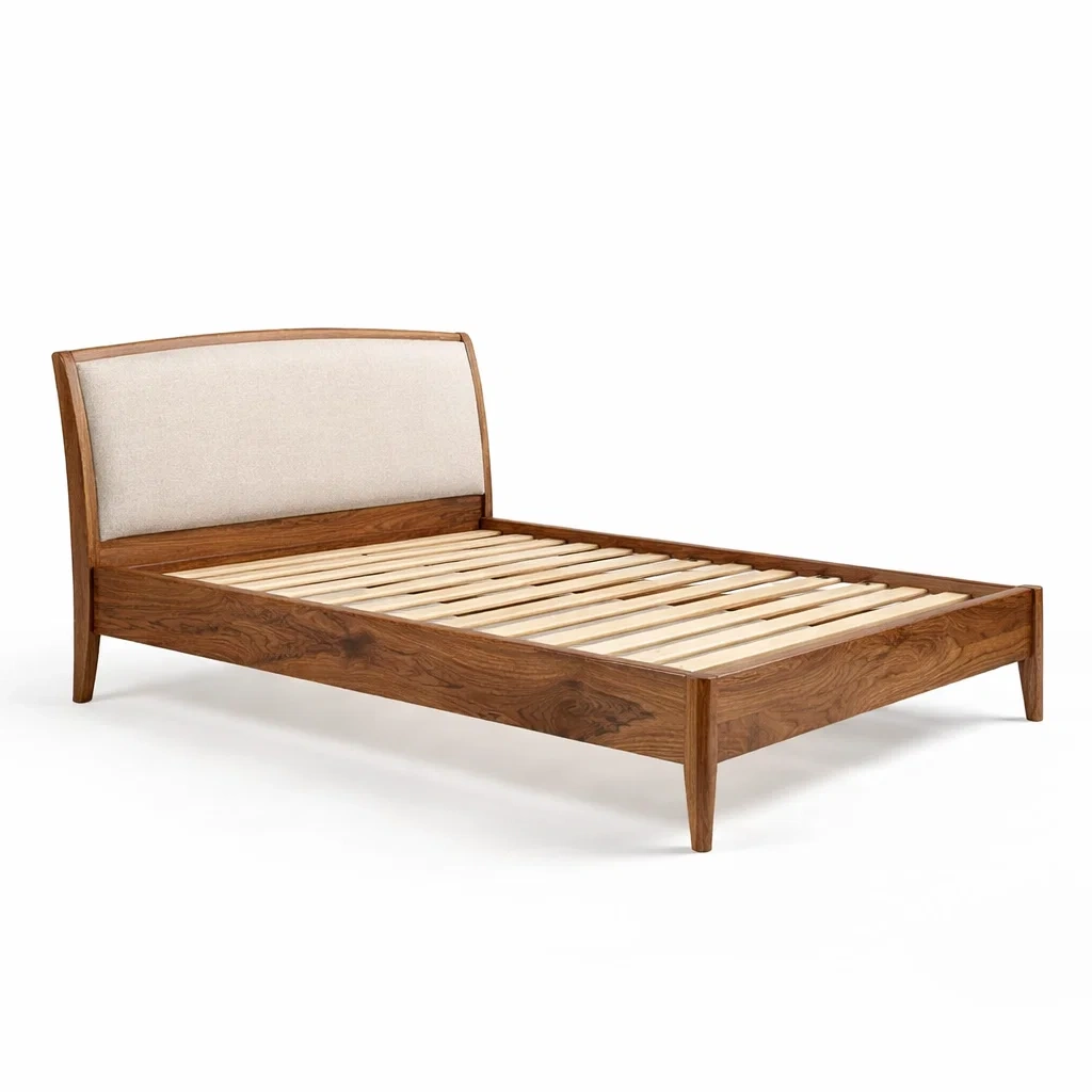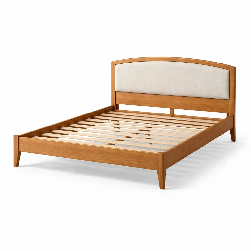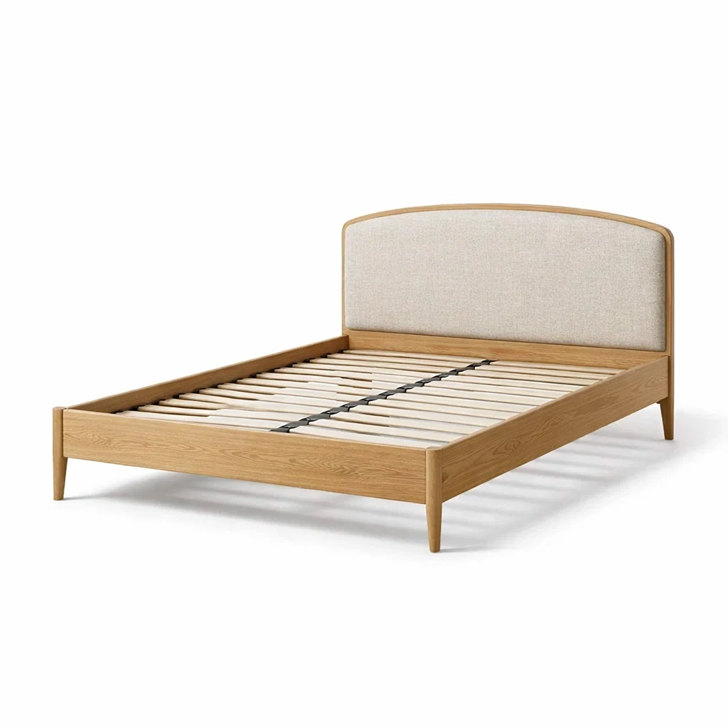 Lit en bois avec tête de lit rembourrée en polyester beige