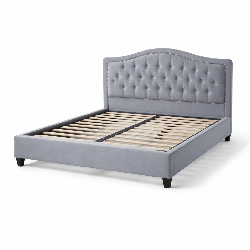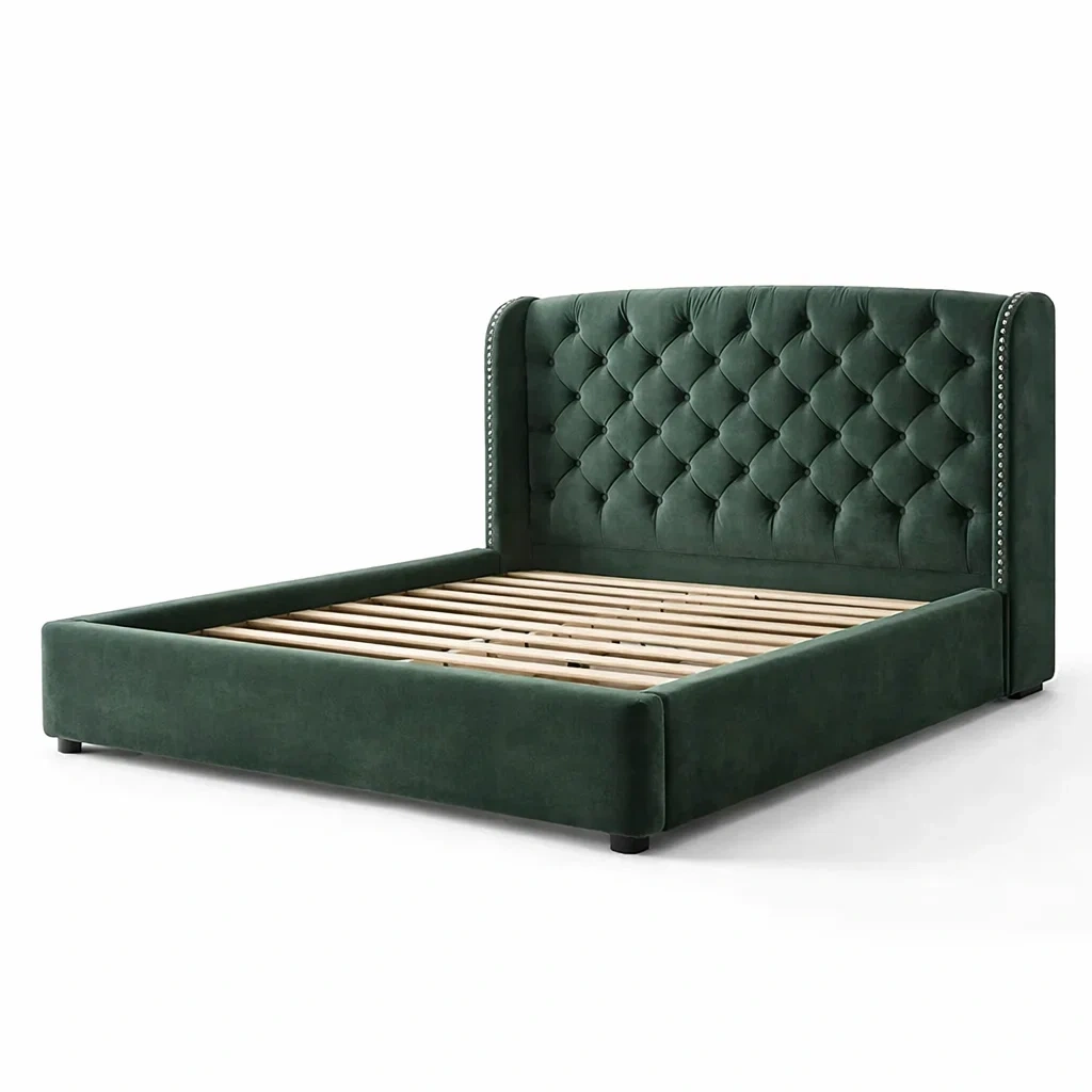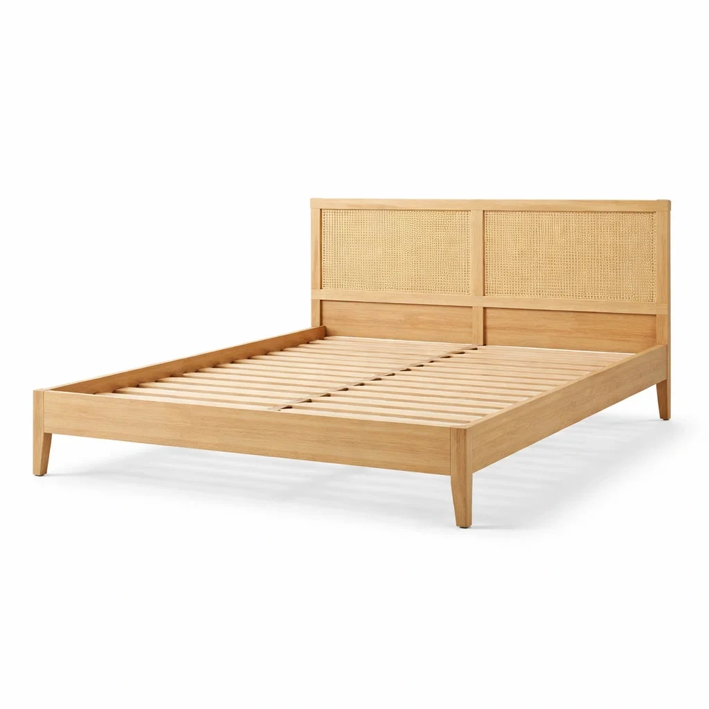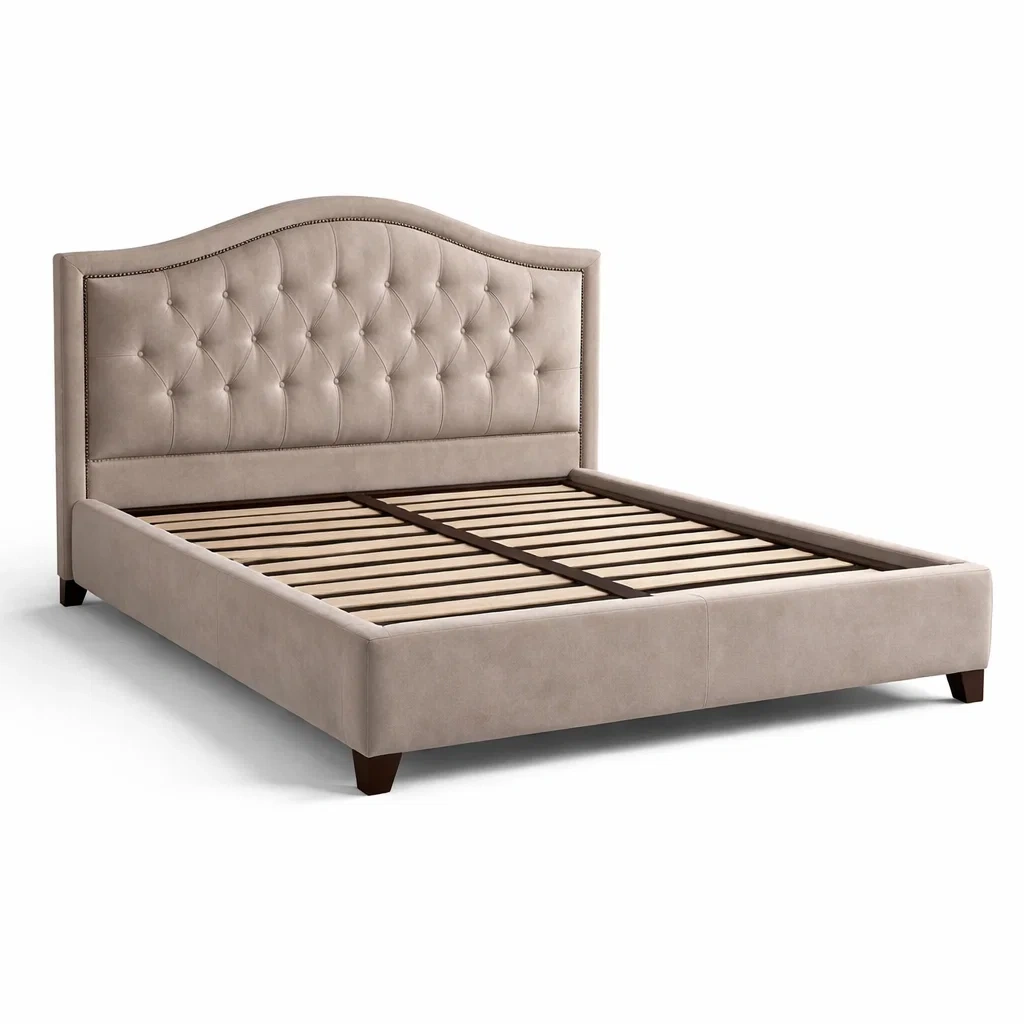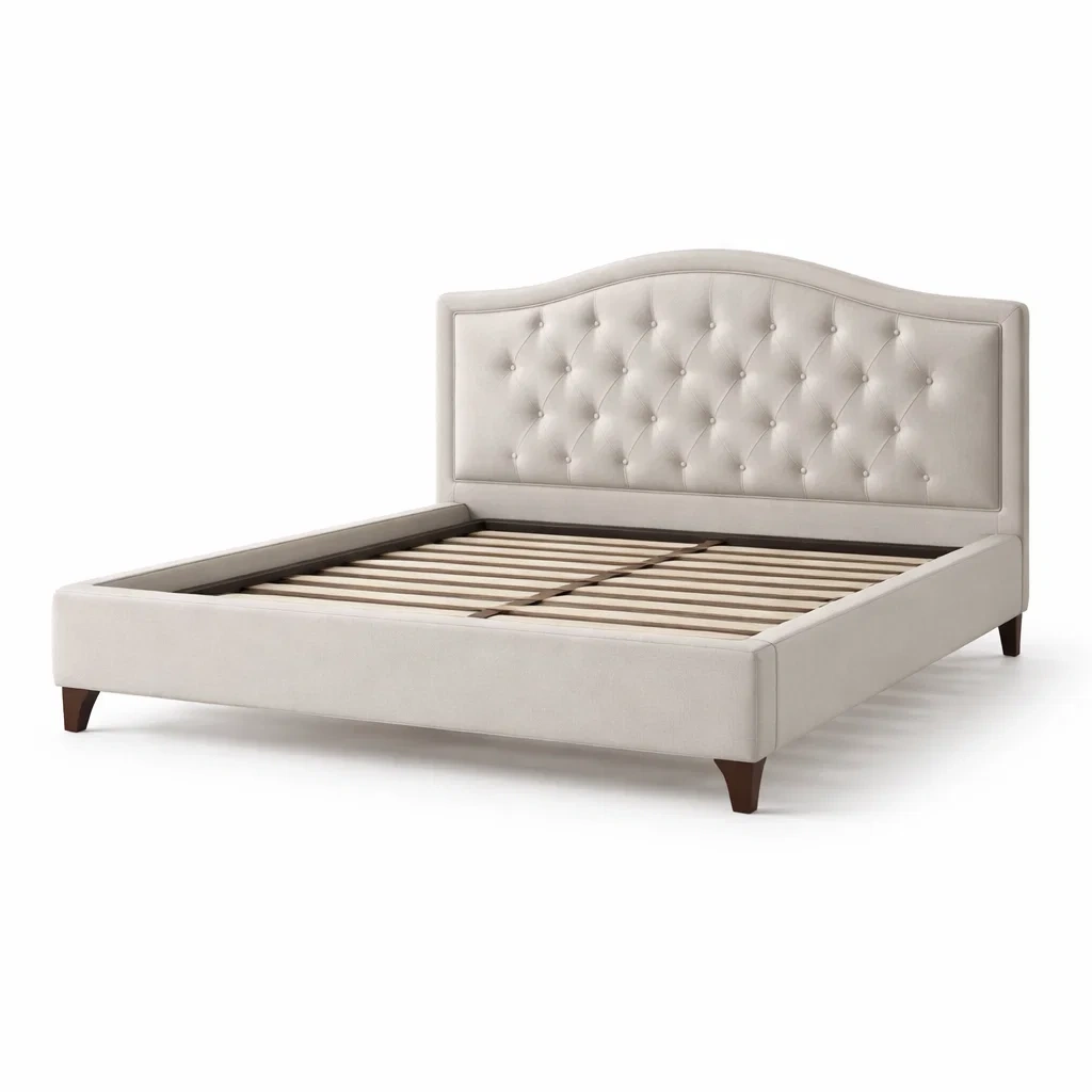 Lit en bois avec tête de lit rembourrée en polyester beige