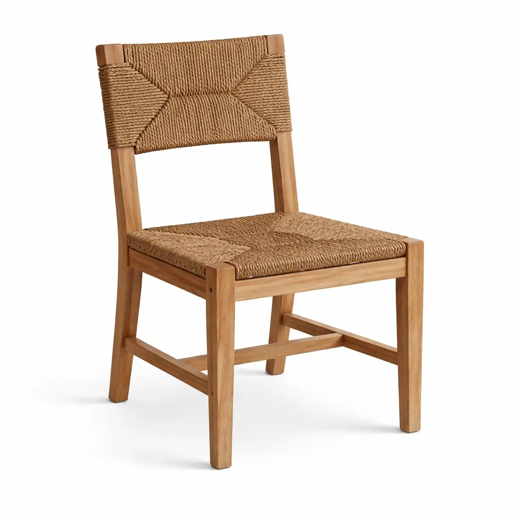 Chaise au style naturel avec cadre en bois de chêne.