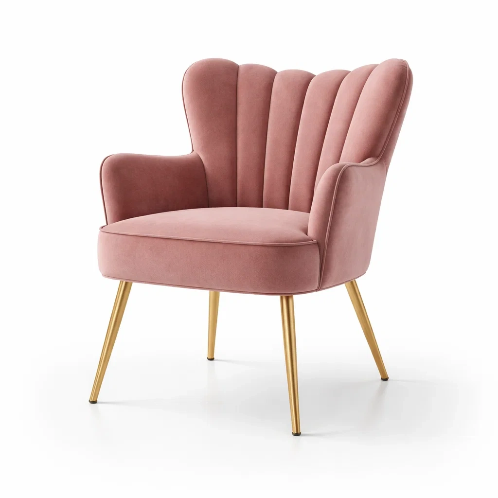 Fauteuil en velours rose avec pieds en métal doré