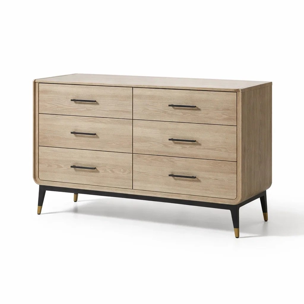 Matériau du produit : Corps en panneaux de fibres à densité moyenne avec placage de chêne, pieds en métal.